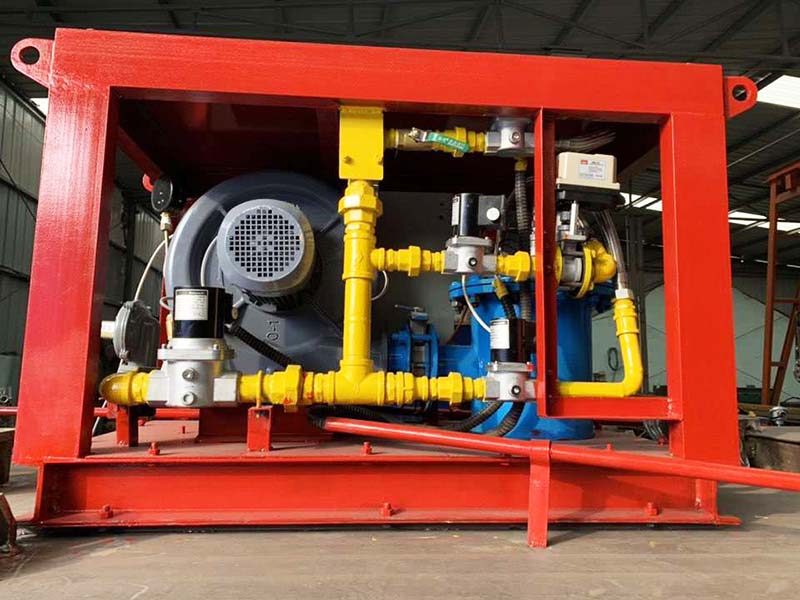 中間包烘烤器:包括燃燒器、鼓風機、助燃風管道系統和煤氣管道系統,所述助燃風管道系統一端連接鼓風機,另一端接入位于燃燒器前的煤氣管道系統,還包括通過控制煤氣管道閥門開閉自動調節溫度的控制系統,所述燃燒器為1-5個(根據膜胎尺寸確定),中間包工作層受熱均勻,易脫模節能效果明顯。