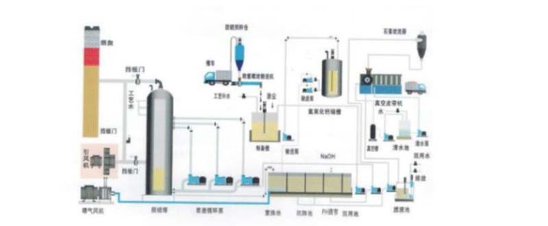雙堿法脫硫工藝,簡稱雙堿法,是較常用的煙氣脫硫法。鈉鈣雙堿法采用火堿吸收SOz,石灰還原再生。再生后吸收劑循環(huán)使用,無廢水排放。窯爐煙氣經(jīng)除塵器除塵后進(jìn)入脫硫塔,并與脫硫液中的堿性脫硫劑在霧化區(qū)內(nèi)充分接觸反應(yīng),完成煙氣的脫硫吸收。